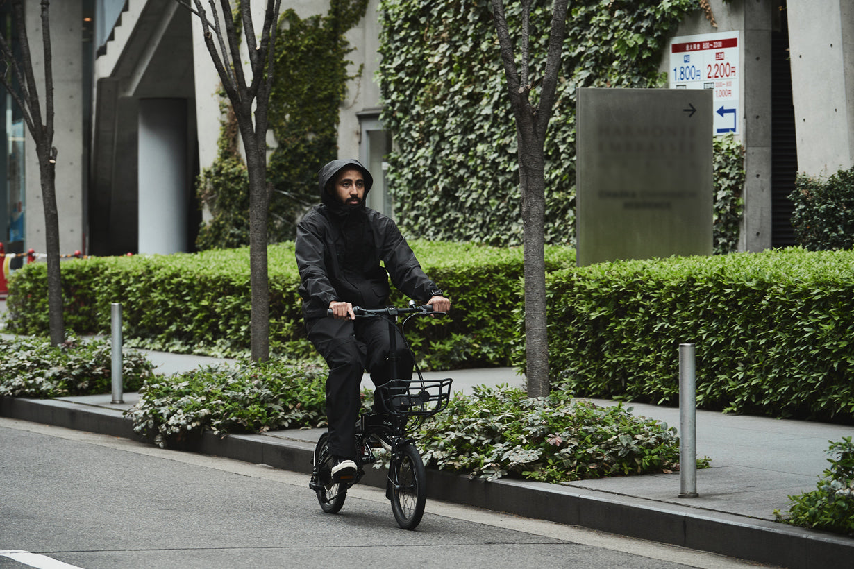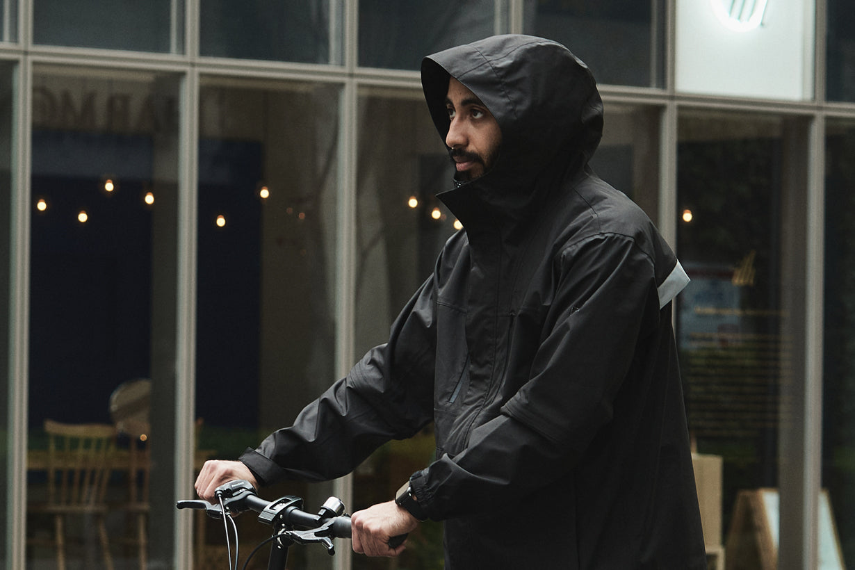 釣り人向けに開発しましたが、「耐水圧20,000mm」「透湿性30,000g/㎡/24hr」と蒸れにくい高性能なレインウェアなので、自転車での通勤などにもオススメ。