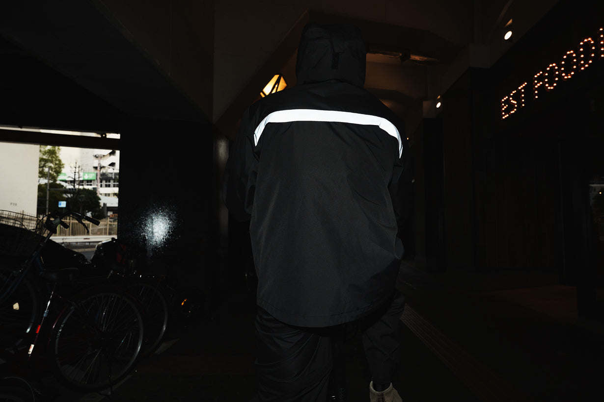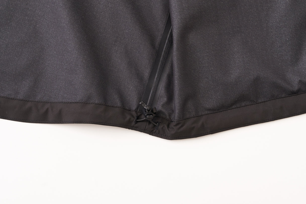 ジャケットの裾にもドローコードがあり、風が強い時のジャケットの裾からの風の侵入も防ぐことができます。