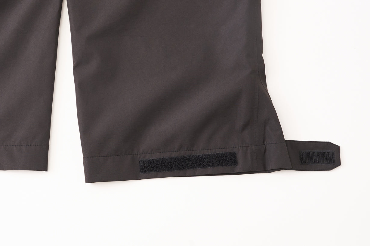パンツの裾のベロクロを完全に外すと裾が一段と広くなり、急な雨の際などオーバーパンツとして履く際にも履きやすくなっています。