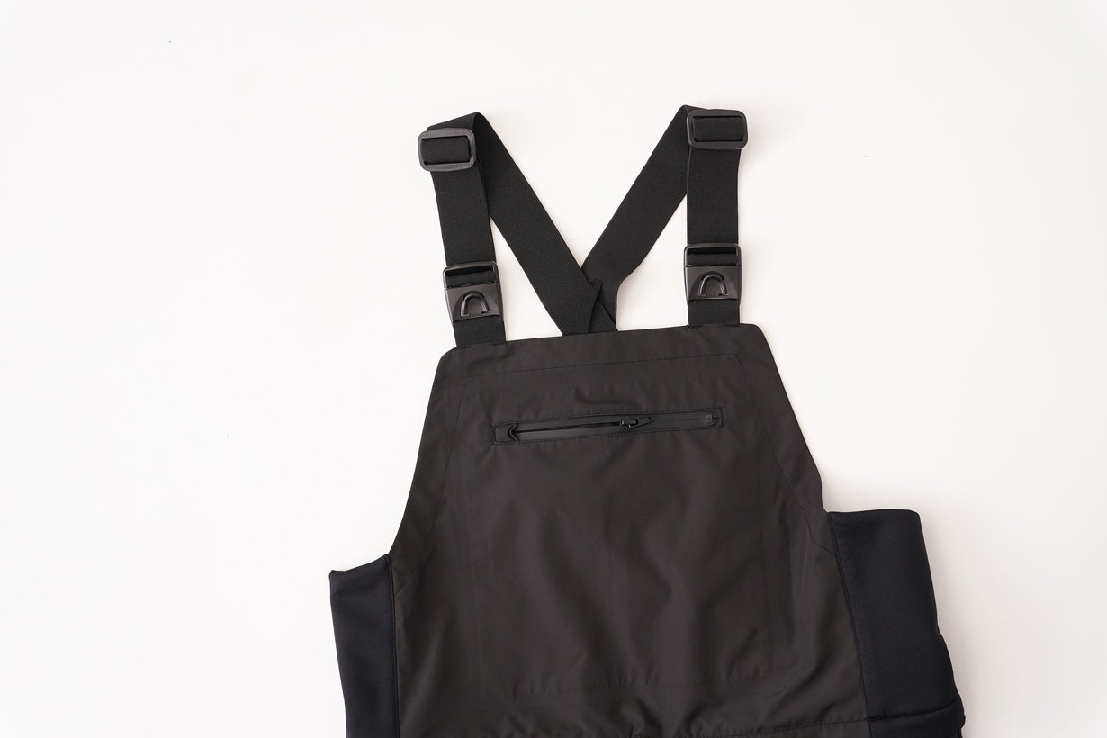 ビブパンツスタイルで着用する場合の履きやすさを考え、ビブ(胸当て)部分のサイドは伸縮性のある素材を選びました。